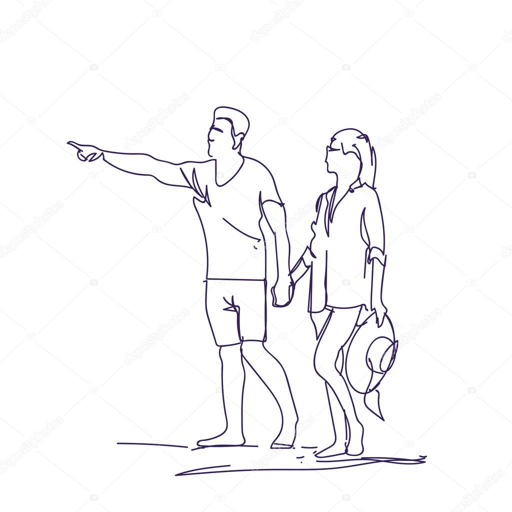 walking sketch couple holding hands person woman man together sketches vector paintingvalley depositphotos.
