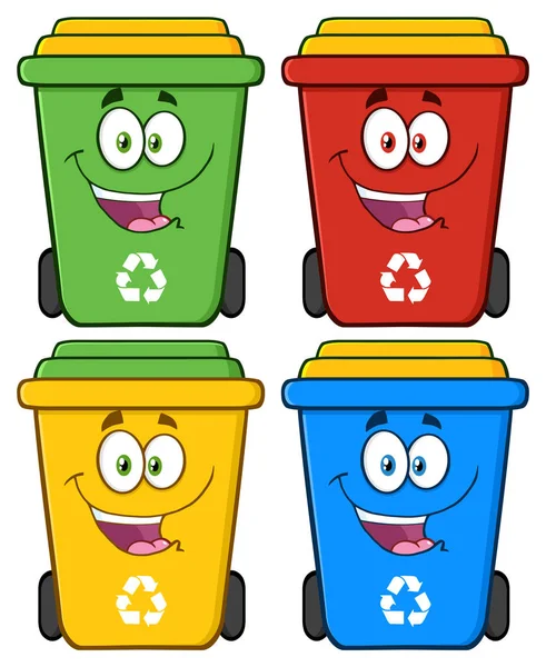 Happy Green Recycle Bin Cartoon Character. Vector Illustration Isolated